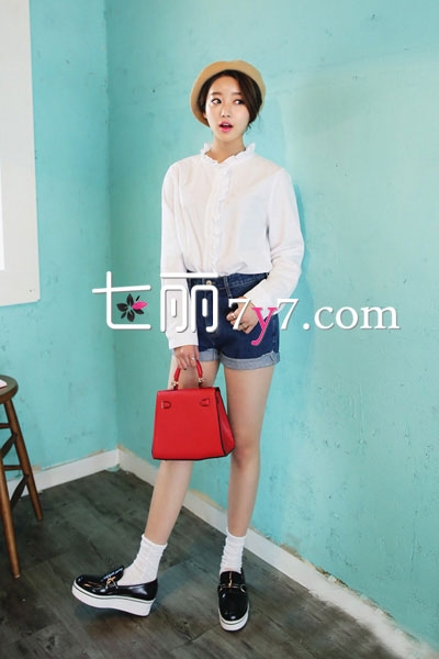搭配看点:卷边的牛仔短裤,上身穿选择了白色上衣,立领的设计增加了一些古典韵味感,整个服饰给人一种清新舒适感,内扎穿法,显瘦又显高,拉长下半身线条比例,看着就很时尚精神!