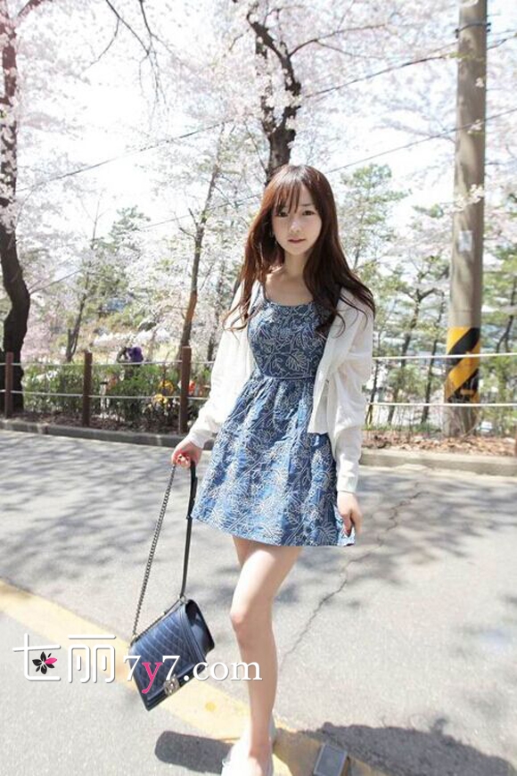 搭配看点:一袭蓝色的印花牛仔连衣裙,透着清新素雅的气质,简约大方。高腰的款式,即便是身材矮小的女孩也可以这样穿,特别娇俏甜美,搭配白色薄款短开衫,格外俏皮时髦。这身搭配很简单,但也透着清新的淑女气质。