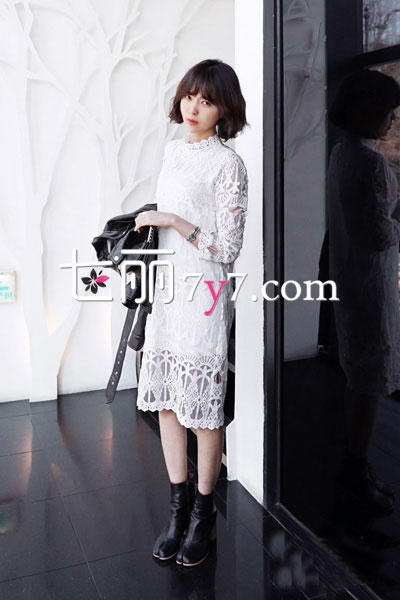 搭配看点:白色的蕾丝连衣裙,唯美精致的蕾丝设计显得格外浪漫,贴身的设计修饰出好身材,裙摆处稍显镂空风格,显得格外的华丽,花边立领设计,更有古典的优雅气息,单穿或内搭都好看!