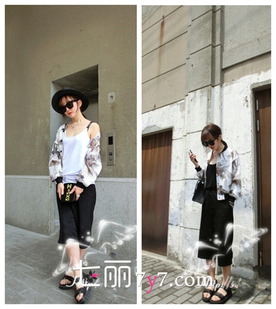 搭配四:棒球服+吊带+阔腿裤