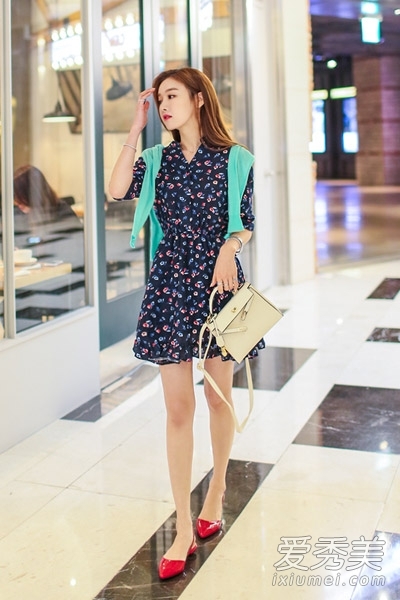 搭配看点:长袖的碎花雪纺连衣裙,小清新的碎花,雪纺的材质,都是春夏季节不能少的服饰,很简单的服饰就能穿出韩系少女味道,轻盈的裙摆塑造唯美气息,外搭一件开衫也好看。