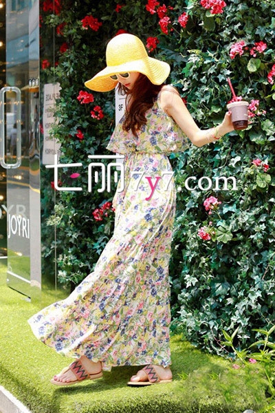 搭配看点:波西米亚风的长裙,如果是刚好要出游去海边玩那么一定要败一件,吊带款式加上松紧腰身,小碎花是最经典的款式,完美展示好身材,简约大方设计,穿上凉拖鞋,尽显海边女神气质。