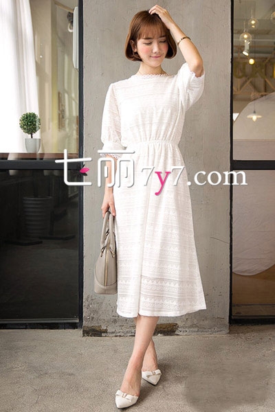 搭配看点:长裙中,一定不能少了白色的长裙,中袖的款式,收腰剪裁的设计,不但百搭又好看,重点是还很舒服,也是少女生们首选的服饰,脚踩一双白色尖头平底鞋,轻轻松松就能展示仙女气质。