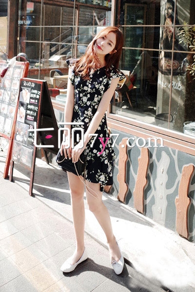 搭配看点:黑色白色花朵的连衣裙,用精致小飞袖的设计,让整个造型有淑女气息,简单大方又优雅,修身设计展示纤细腰身,浪漫碎花衬托出柔美的小女人气息,穿上小白鞋更好看!