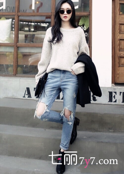 破洞牛仔裤怎么搭配上衣,破洞牛仔裤怎么搭配上衣图片,破洞牛仔裤怎么搭配上衣好看女