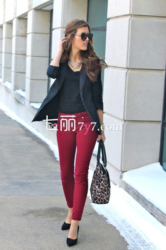 大红色裤子配什么颜色上衣,红色裤子搭配什么上衣颜色好看,大红裤子与上衣搭配图片