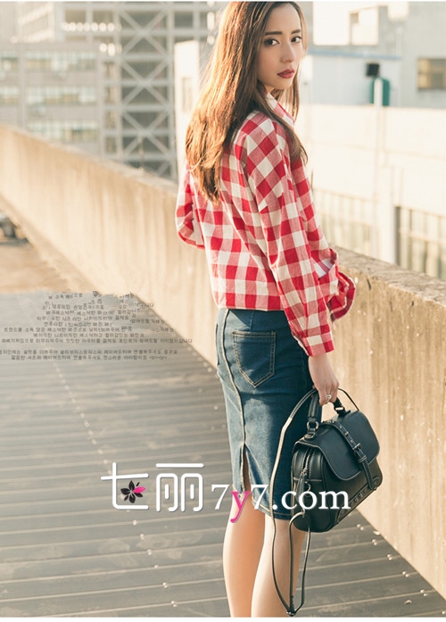 搭配看点:牛仔半身裙搭配红白格子衬衫实在是太甜美和淑媛了,将衬衣扎进裙腰或在腰部随意系个结,随性又浪漫,不论是上班还是聚会都十分抢眼呢。搭配一款个性的mini手提包更加有范儿,搭配皮质踝靴、马丁靴或简约舒适的平底鞋都十分耐看哦。