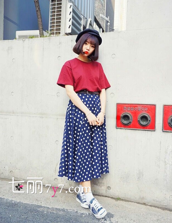 可爱的波点半身裙单品给人的第一印象就是甜美俏丽,但其实这样的单品换一种搭配就会有不同风格哦。那么波点半身裙配什么上衣才能营造出不同感觉呢?来一起看看下面这几组波点裙子搭配图片吧!