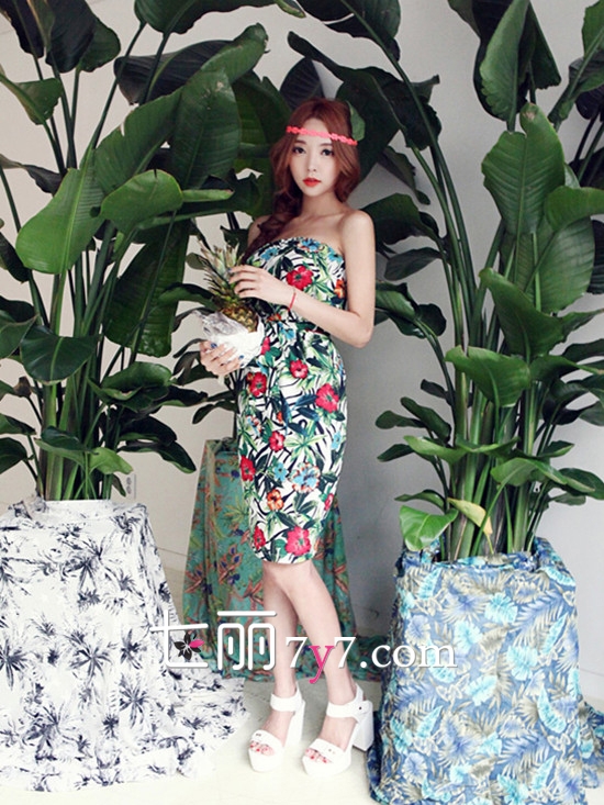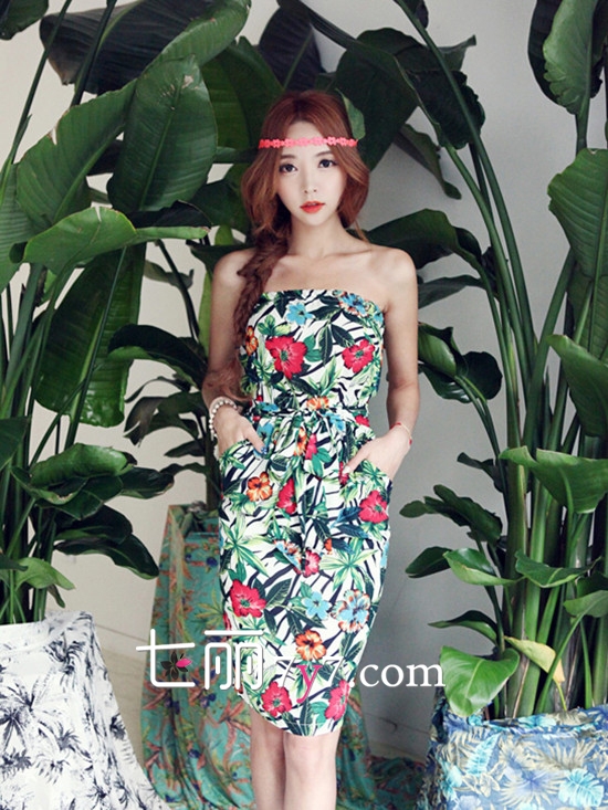 搭配看点:热带印花连衣裙是2015年女神必备连衣裙款式哦,清新缤纷的印花十分惹眼和抢镜。搭配一双厚底或粗高跟凉鞋,气场强大不能忽视。不管是出街还是度假都十分有范儿,吊带或抹胸的设计更加时髦和性感。搭配一顶宽檐帽、一副复古圆框墨镜和一款个性的手拿包或编织包,分分钟秒杀众菲林。