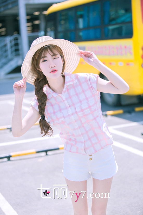 搭配看点:糖果色衬衫今年夏天非常流行哦,清新的薄荷绿、粉、蓝色都是不错的选择,随意搭配一条白色热裤就十分清爽气质,或者搭配高腰牛仔短裤,系上一根棕色或黑色编织细腰带就十分美腻了哦。搭配一顶太阳帽更添清纯少女范。