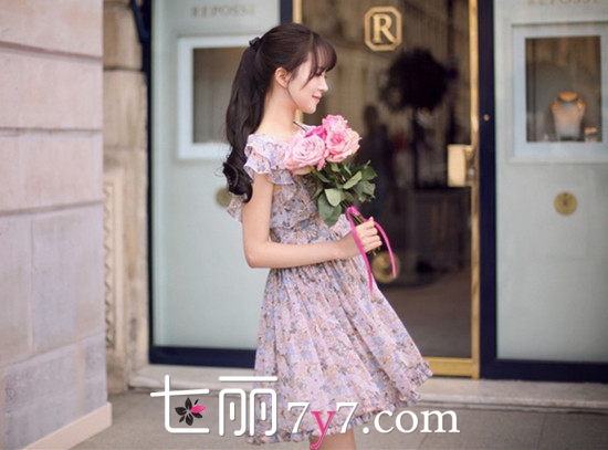 搭配看点:淡紫色碎花连衣裙配以荷叶边衣领的设计十分灵动和气质,飘逸的雪纺材质也十分清新和柔美。宽松的下摆还能轻松遮住大腿和臀部的赘肉,淡紫色系也十分的优雅和衬肤色哦。