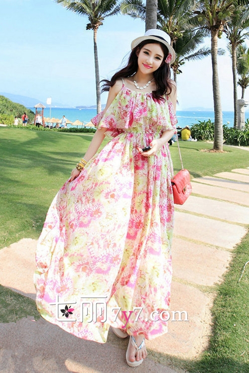 去海边穿什么No.4:波西米亚风热带印花长裙