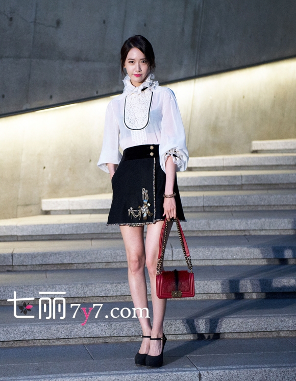 搭配看点:蕾丝立领半透白色衬衣+黑色高腰绣花半身裙+黑色高跟鞋+红黑渐变链条包。1允儿在5月4日参加CHANEL活动身着的这一套女神装扮当日一出场变秒杀菲林无数。散发着浓郁复古气息的蕾丝立领白色衬衣,半透的材质微微露出性感的黑色内搭,搭配一件高腰的黑色半身裙,刺绣的图案,低调而华丽,手提一个红黑渐变色链条包,典雅女神范儿完成。