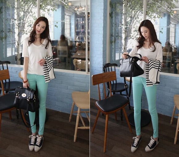 自从韩流时尚袭来之后,糖果色裤子便成了时尚MM的必备穿搭单品,那么糖果色裤子配什么上衣才会好看呢?来一起看看这几款糖果色裤子搭配街拍图,让你即刻变身韩范儿潮人!