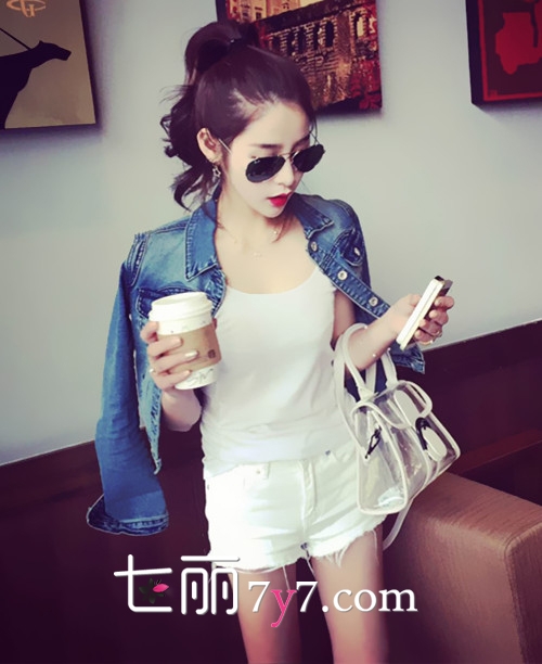 搭配图片二:白色短裤+白色吊带+牛仔外套+透明小包
