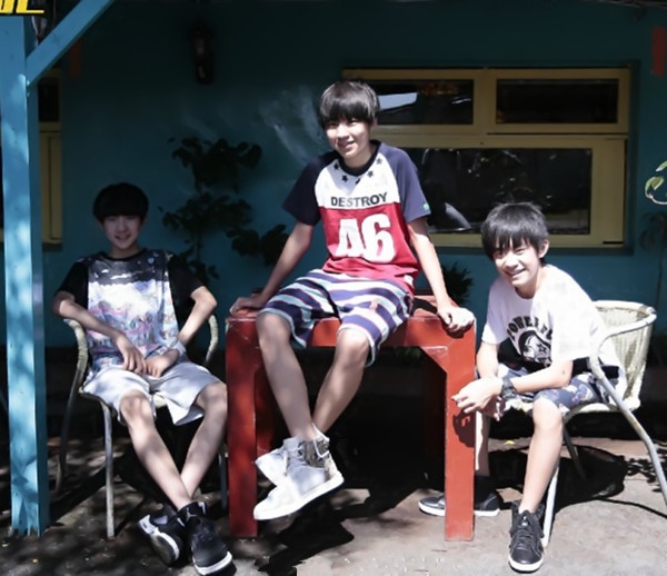就算是户外率性的全体照也要耍帅,简单的T恤搭配短裤,再配上一双帅气的运动鞋,TFboys三个乖萌的小鲜肉简直就像邻家阳光男孩~
