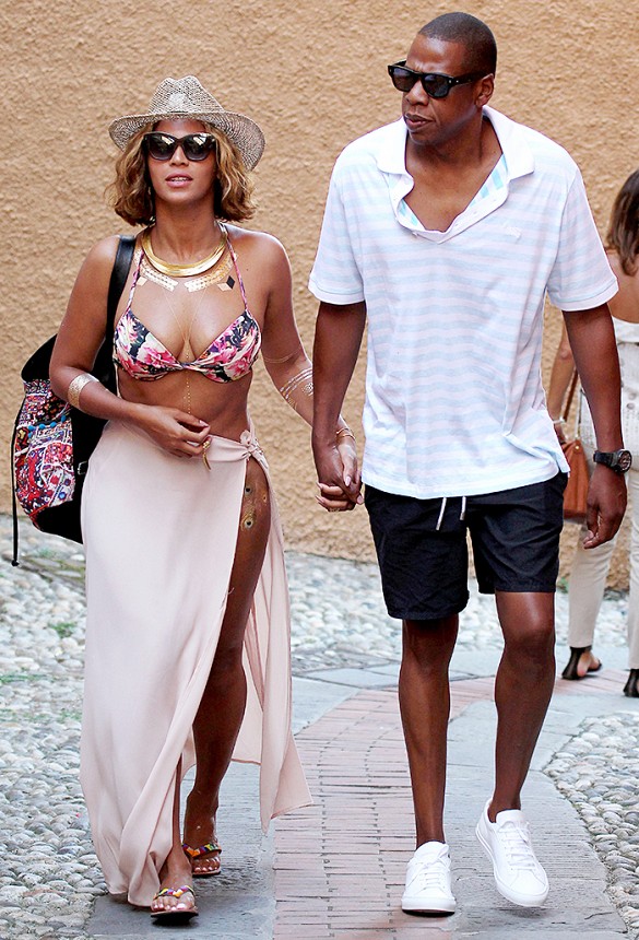 搭配看点:谁说胖子不可以穿比基尼,胖女神beyonce就穿得十分chic+热辣,本套造型最关键的就是碧昂斯选择了长丝巾系在腰间来遮挡腿部肉肉,同时还十分机智的露出一侧大腿,不破坏整体身线的统一性,这样欲遮还羞的胖子穿衣搭配技巧一定要get哦。还有一点就是精美夸张的配饰能够起到转移视线的效果,可以选择时髦的帽子、墨镜或和项链,再怎么胖,头和脖子还是不会胖到哪去吧。