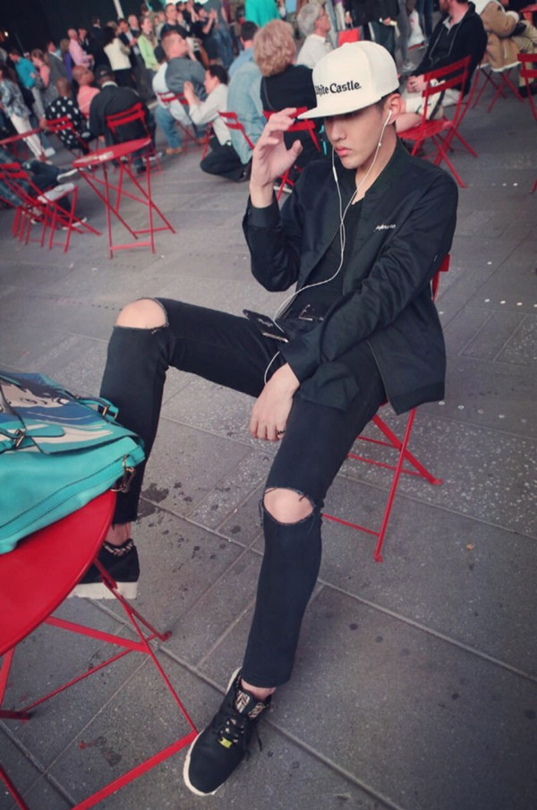 LOOK 7:棒球服+黑T+破洞牛仔裤