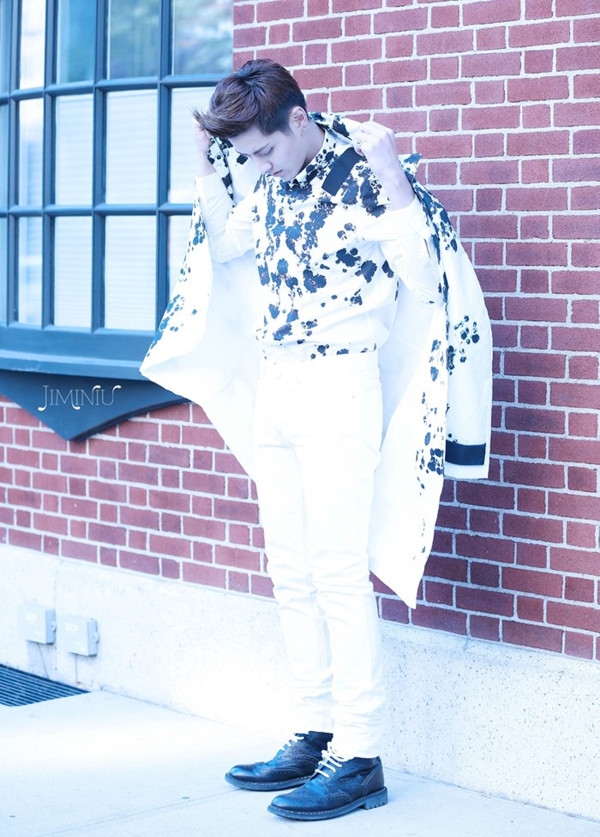 搭配看点:这一身印花套装才是花美男形象的最佳诠释,相信也只有吴亦凡这等高颜值+大长腿神一般的男人才hold得住了。