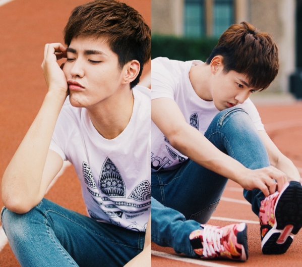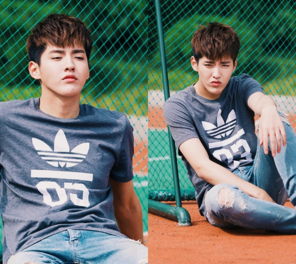 清新的白T搭配蓝色牛仔裤,配上吴亦凡精致的五官,画面简直太美不敢看。