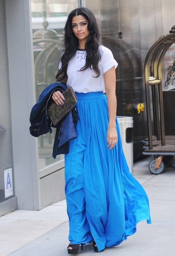 蓝色长裙配什么上衣好看,蓝色长裙配什么颜色上衣,蓝色长裙搭配什么上衣