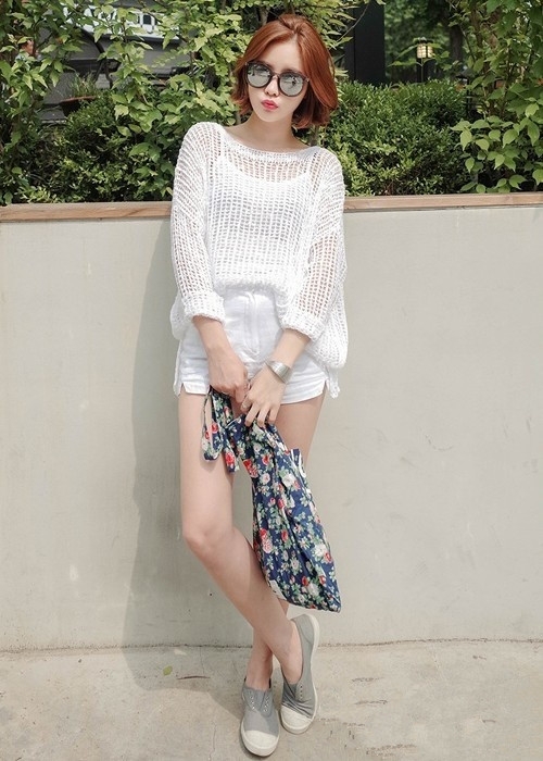 小个子夏季穿衣LOOK 2:镂空上衣+短裤