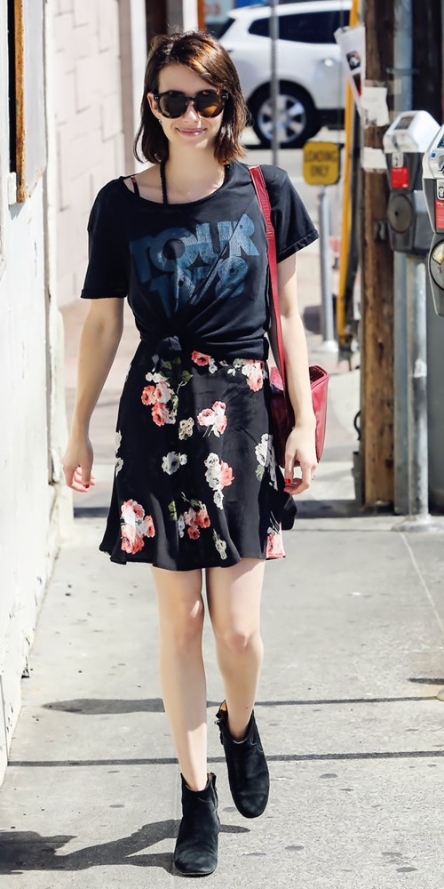 矮个子女生夏季穿衣搭配图 艾玛·罗伯茨emma roberts街拍示范显高搭配