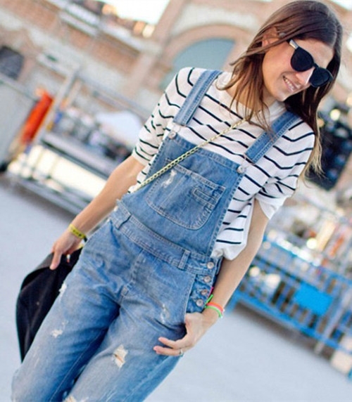 LOOK 1:牛仔背带裤+黑白条纹T