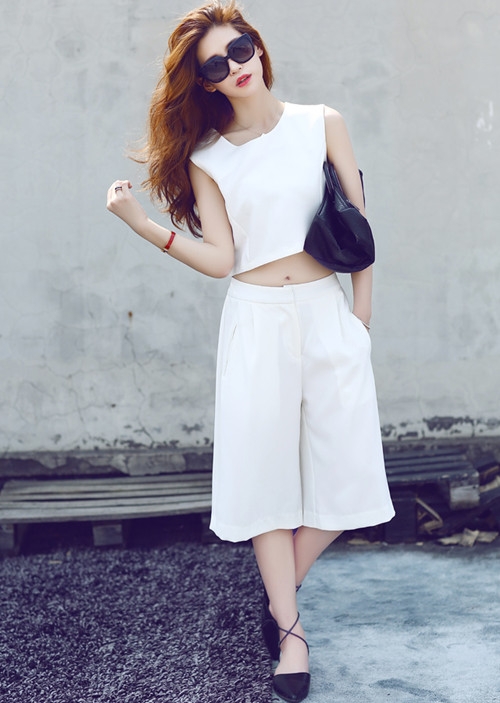 LOOK:5:白色阔腿裤+白色上衣
