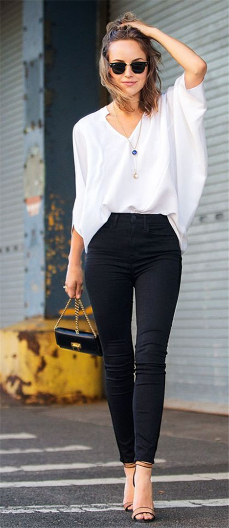 黑色裤子配什么颜色上衣 LOOK 4:白色上衣