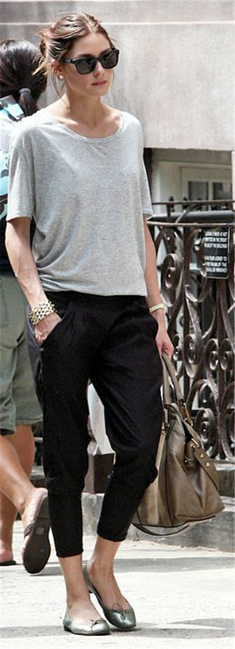 黑色裤子配什么颜色上衣 LOOK 7:灰色上衣