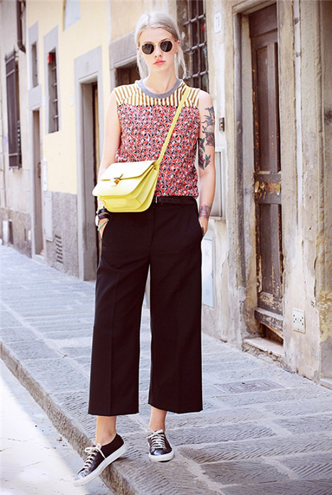 黑色裤子作为人手必备的百搭利器,配什么颜色上衣才好看呢?搭配牛仔上衣、条纹上衣、还是印花上衣呢?下面就一起来看看黑色裤子搭配上衣图片吧,街拍达人教你玩转美式风尚,变身时尚icon