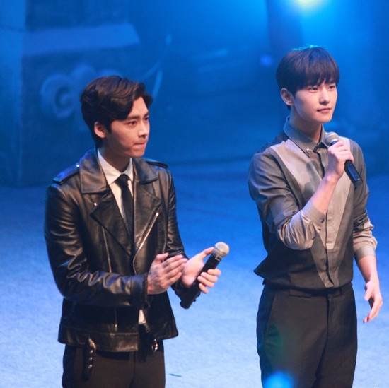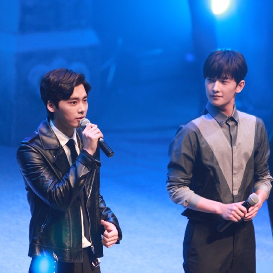 李易峰杨洋以一身黑灰色系服装亮相《盗墓笔记》首播发布会,身着机车皮衣的李易峰帅气逼人,小鲜肉杨洋也是一身灰色系搭配,拼色衬衫搭配西裤尽显型男魅力。