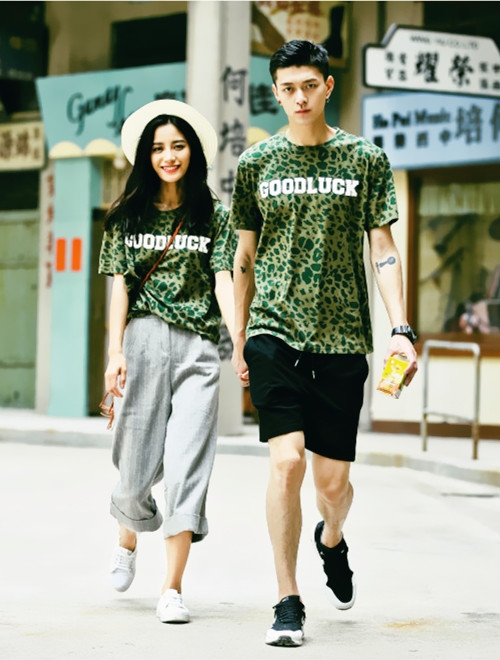 搭配五:绿色T恤+黑色下装