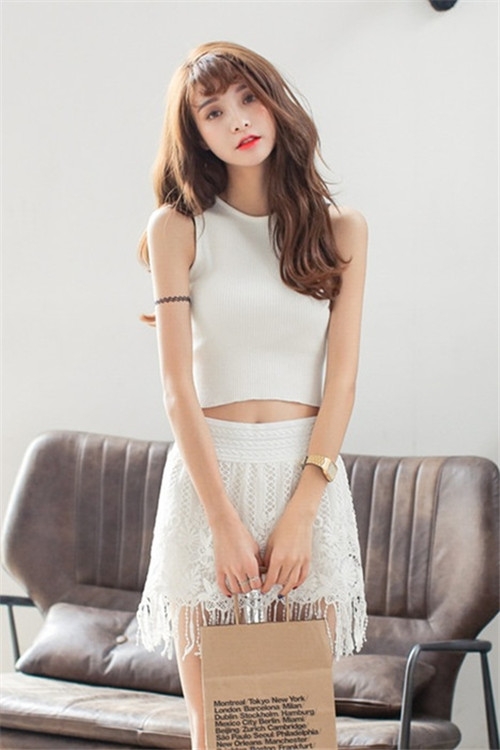 针织背心+流苏短裙+知性手表+唯美少女单鞋