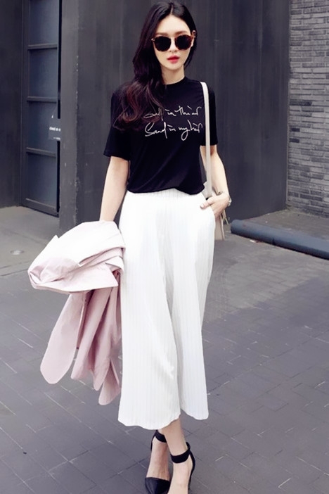 黑色T恤作为人手必备的百搭单品,搭配什么颜色的裤子才好看呢?清新的白色阔腿裤还是黑色小脚裤呢?又或者是时下最热的破洞牛仔裤?下面就赶紧来看看黑色T恤搭配裤子图片吧,多种搭配选择变身时尚icon。