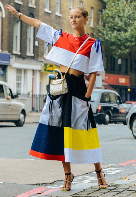 如果小腹不够平坦的话,可以多搭配高腰伞裙,这样既可以在视觉上改变整体比例,下半部分会显得加长,又可以规避身材的弱点,马上变身chic俏女郎。