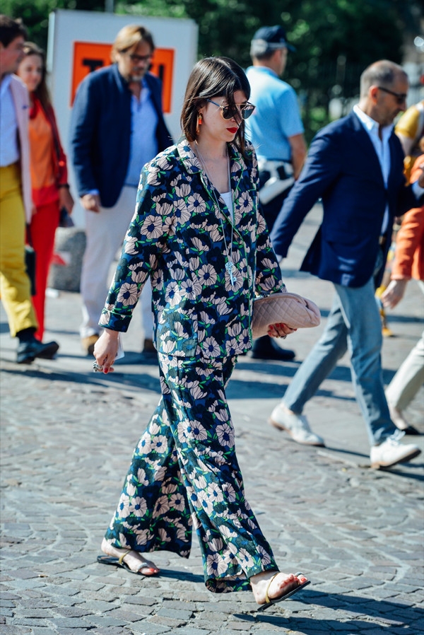 搭配看点:这样的印花搭配绝对能让你轻松成为路人焦点,时尚潮流本就独树一帜,何必与他人苟同。想要低调的抢镜?换成印花短上衣搭配同色印花包臀裙一样轻松hold住潮流,关键点是:上衣与下装的色系一致,款式不限,因为大面积的同色单品总是比小面积混色更加耐看和出众。