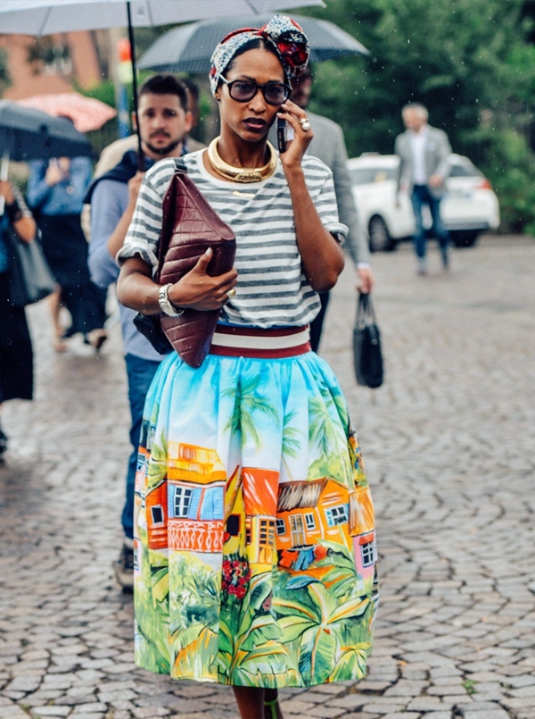 怎么穿衣服有气质 No.4:印花头巾打造名媛气质