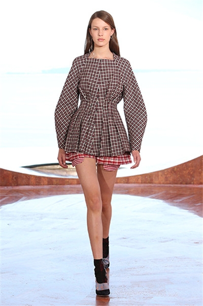 将织物与工艺相结合,将传统和经验相交融,这对品牌时装工坊来说可谓轻车熟路。在褶纹半身裙和连身裙上,随处可见巧妙拼贴而成的胶粘设计,毛边裁剪的金银线织物则组合成地中海风景中独有的原始矿层。设计的独特建筑用圆润线条为时装艺匠带来了不竭灵感,Bar套装由此变得更加柔韧和轻盈,肩部和胸部变得更加丰盈,垂尾则变成了口袋。外套时而呈现出罩衫的特点,时而采用线条圆润的立领,整体造型更显轻巧。