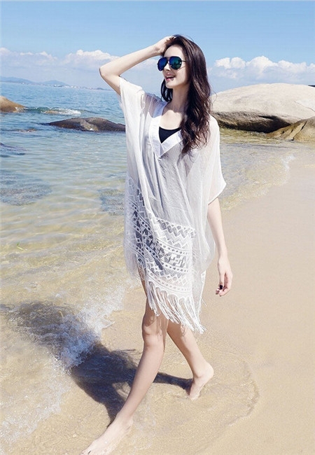 流苏裙V领露出锁骨,在视觉上又能显得肩膀较窄,相对于紧身的衣服来说,肩膀宽的女孩子更加适合宽松的衣服,如果能搭配精致的项链更有锦上添花的效果。