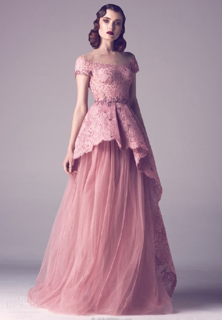 FadwaBaalbaki2016春季定制婚纱礼服,主打复古风格,精致蕾丝、不规则裙摆、大胆的领口设计,奢华多彩的颜色,更加魅力无限。
