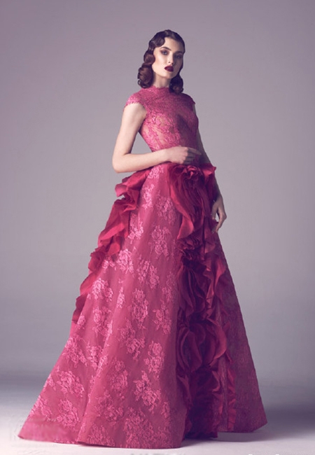 FadwaBaalbaki2016春季定制婚纱礼服,主打复古风格,精致蕾丝、不规则裙摆、大胆的领口设计,奢华多彩的颜色,更加魅力无限。