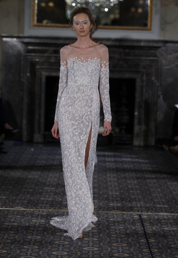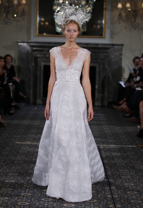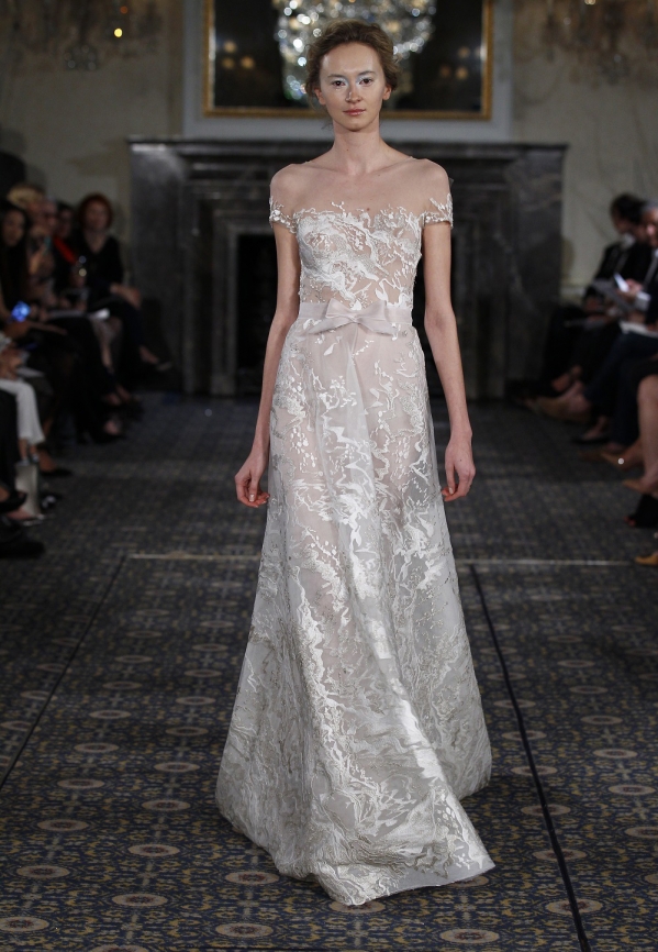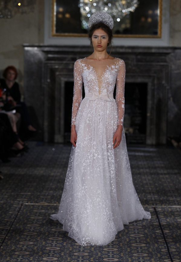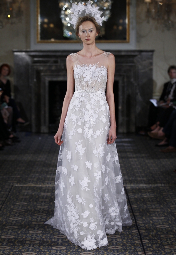 穿上Mira Zwillinger 2016春季婚纱的模特瞬间成为了冰雪公主,少了水晶鞋却不减吸引力,忘记一切享受这属于自己的公主梦幻时刻吧。