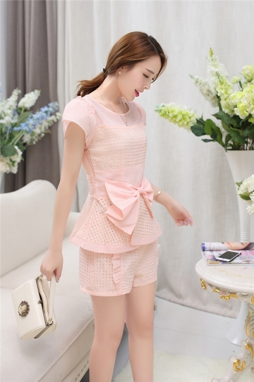 粉嫩嫩的一整套套装,格纹的设计勾勒了身形。大大的蝴蝶结可以给人视觉错觉让你拥有小纤腰,这套套装的材质选用轻盈,看上去一点都不会负担哟~