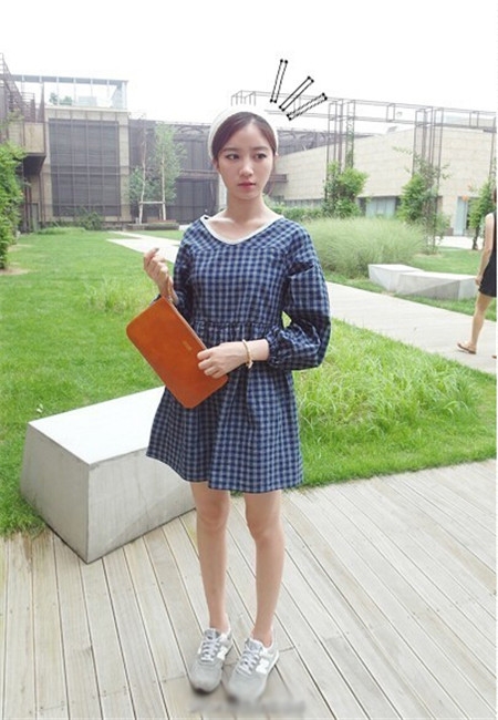 这款连衣裙十分小清新,搭配新百伦的运动鞋最为合宜,这种搭配方法适合逛街出游,可爱又舒适。