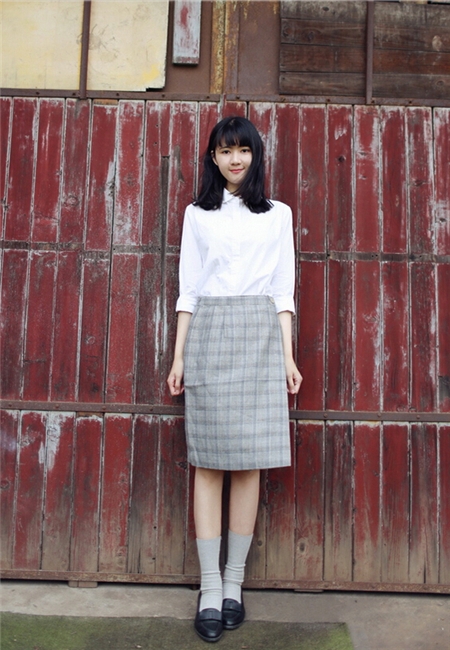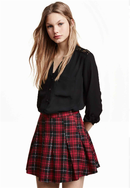 红黑色的格子裙和黑白格子是经典中的经典,红黑格子搭配上半身黑色雪纺长袖,打褶半身短裙,柔软格子图案斜纹布,学院风哦。青春时尚的菇凉值得借鉴。