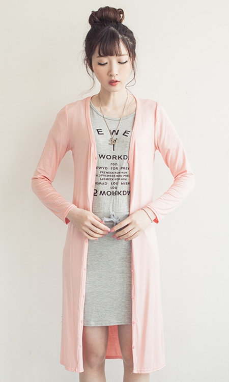 示范二:灰色连身裙+粉色防晒衫+锁骨链