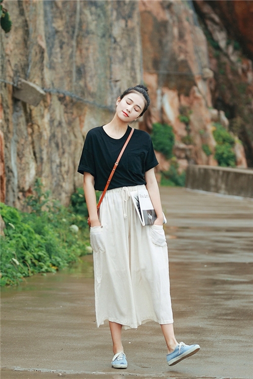 白色阔腿裤搭配什么上衣,小编为你你细细数来白色阔腿裤和短袖搭配的那些情怀。