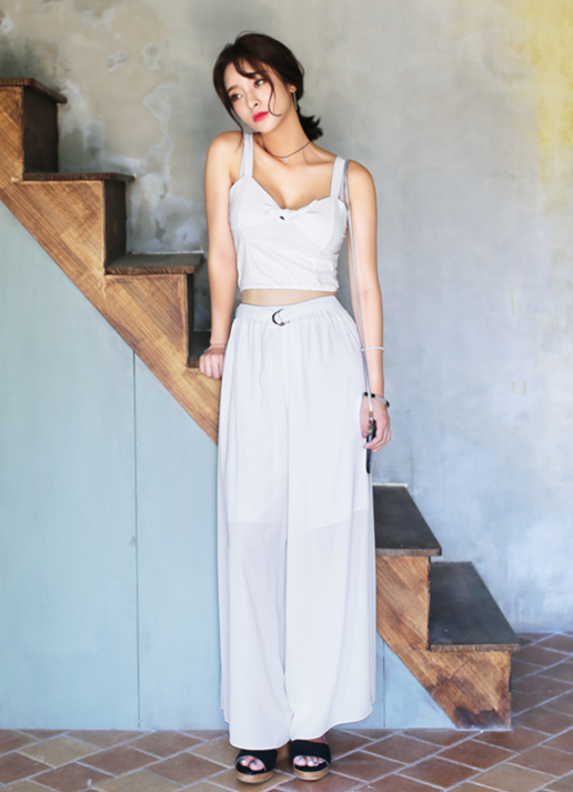 搭配看点:白色背心搭配同色系下装则十分抢镜,如果选择时髦的阔腿裤就更拉风了。